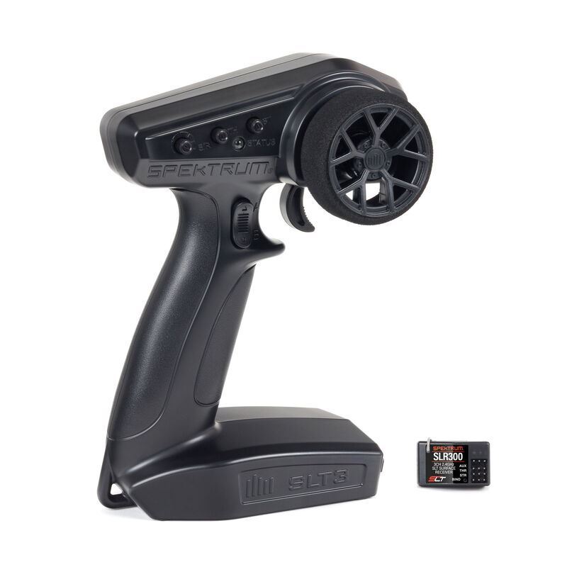 The monster truck now also includes the Spektrum™ SLT3™ transmitter and SLR300 receiver. The transmitter is ergonomically designed for long periods of fatigue-free bashing and has a foam wheel for precise fingertip control plus an improved hand grip and trigger feel. New bashers will be able to set throttle limits at 50% or 75% until they are ready to use the full speed potential. The SLT3™ is compatible with Tactic® SLT™ receivers to run other RTR vehicles you may own, and includes a third channel to control optional features such as lights and winches on models that have them.