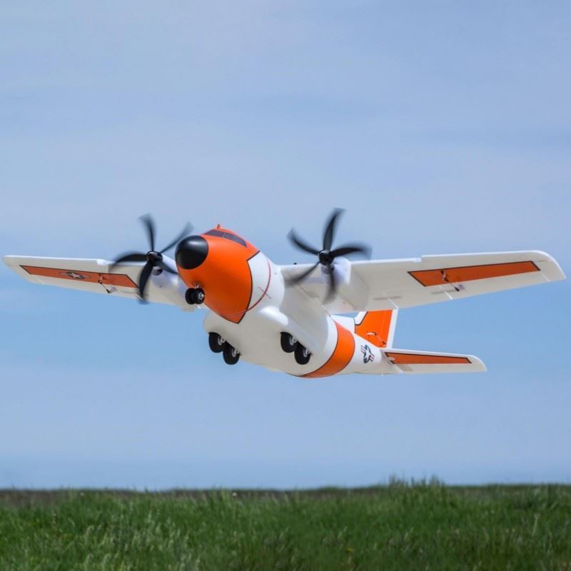 The E-flite® EC-1500 Twin is a groundbreaking design that offers a unique flight experience for a wide range of pilots. This twin/multi-motor model carries echoes of full-scale civil and military cargo transport aircraft, but it has an incredible range of capabilities and options that no other RC airplane can match. Featuring 3S and 4S compatible power systems with custom 5-blade counter-rotating props, the EC-1500's flight envelope encompasses everything from slow and scale-like, to sport flying and even aggressive 3D aerobatic capabilities! You can fly from paved, grass and dirt surfaces; from snow with the included optional-use skis; or from water using the optional float set (sold separately). It also includes factory-installed LED lights, a functional cargo door, plus decals to customize the finish with Air Force, Army, Coast Guard, Marines, Navy and other markings.