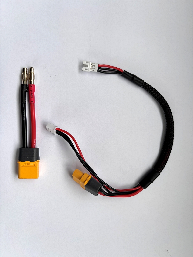 Balance charge plug adapter for Eflite/Spektrum PH/UMX 2S 7.4v Battery, XT60 Charger plug 200mm Long With Braid and Glued Shirk. Include XT60 to 4mm Bullet adapter