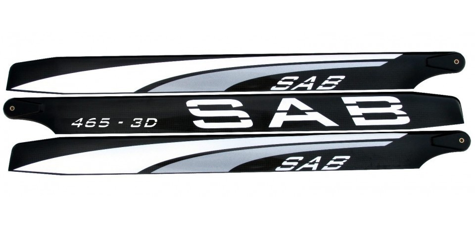 | SAB Blackline 3D Flybarless Blades 3 Blade SET 465mm 3BL465-3DS -In order to improve safety in the event of a crash, we include a steel safety wire alongside the leading edge of the blade. Blades are also made with a double layer of unidirectional carbon fiber. -SAB's BlackLine blades are the strongest blades we have ever made! The new 465mm BlackLine blade is the latest product that SAB Heli Division offers for 3D flight in the world of three blade rotors. This solution offers high agility thanks to weight and dimensions reduction maintaining all BlackLine performances. "Tapered tip has three effects: reduces rotor aerodynamic drag, gets the center of gravity close to rotation axis and reduces noise. "The symmetric profile ha lower thickness and little chord. It offers better reacction to flybarless systems and it maintains high aerodynamic and structural performances. "The reduced weight and the center of gravity position are chosen in order to get a better rotor response from pilot's control. Every feature is chosen in order to take advantage three blade rotor qualities.