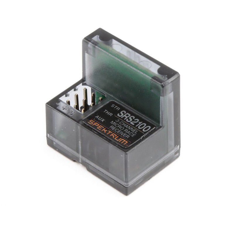 Eliminate clutter and improve your RF performance with the SR2100 DSMR® Micro Race Antenna-Less receiver. The SR2100 features the signal performance you demand while making installing your reveiver in a car or truck easier than ever. The Frequency-Agile DSMR technology delivers a super-fast 5.5m/s frame rate in even the noisiest of RF environments.