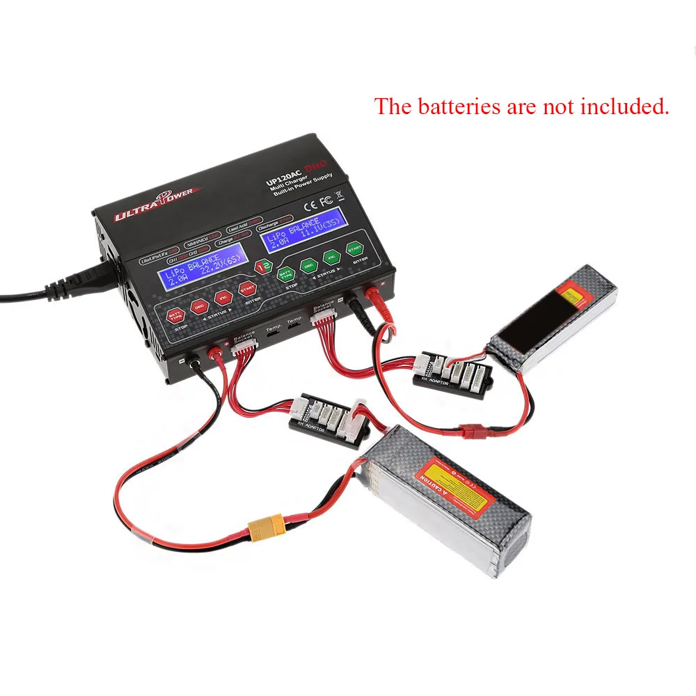 Features:2 independent charging ports, Port 1 is capable of 120Watt and Port 2 is capable of 100Watts.Optimized operating software.Balancing individual cells for battery discharging.Adaptable to various type of lithium battery.Fast and storage mode of lithium battery.Cyclic charging/discharging.Re-peak mode of NiMH/NiCD battery.Data store/load.Terminal voltage control(TVC).LiPo battery meter.Maximum safety.Automatic charging current limit.Capacity limit.Teperature Threshold(teperature probe is not included).Processing time limit.Specifications:Item brand: Ultra PowerItem num: UP120ACInput voltage: AC 100 or 240V / DC 11-18VNOTE : Please make sure the AC INPUT VOLTAGE selection (SWITCH) is set properly (matching the AC voltage of your country).Charge/Discharge power:Port 1: Max. 120W/10WPort 2: Max. 100W/10WCharge current range: 0.1-10.0ADischarge current range: 0.1-5.0ALiIo/LiPo/LiFe cell count: 1-6 seriesNiMH/NiCD Battery cell count: 1-15 cellsPb battery voltage: 2V-20V(1-10 cells)Battery data memory: up to 10 dataBalance Current: 300mA/cellNet weight: 1144g / 2.5lbDimension: 180 * 139 * 60mm / 7.1 * 5.5 * 2.4inPackage informations:Package size: 26 * 20 * 7.5cm / 10.2 * 7.9 * 3inPackage weight: 1559g / 3.4lbGeneral gift boxPackage list:1 * UP120AC DUO balance charger1 * Power supply cable5 * Charge connect cable1 * User Manual