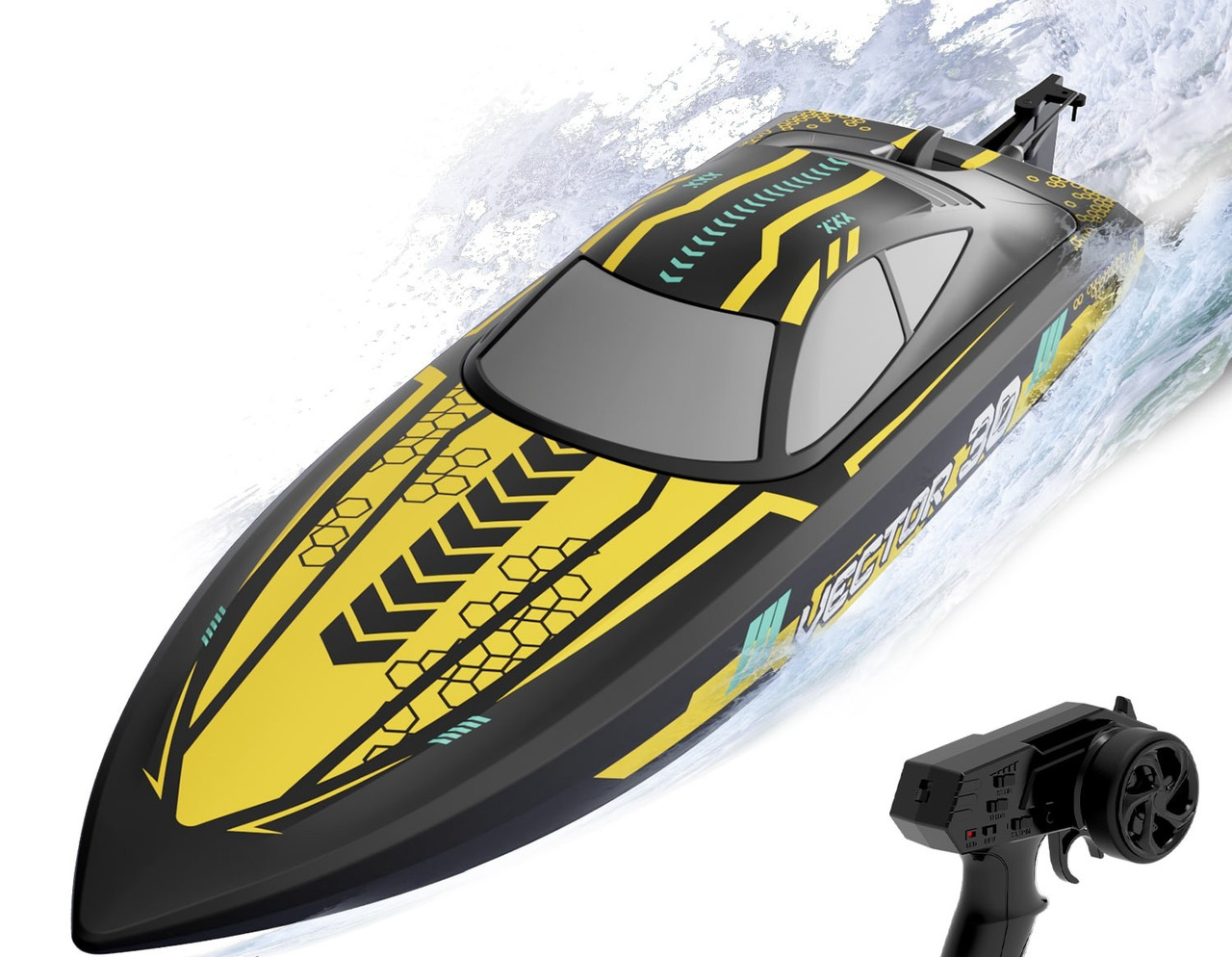 The Vector 30 motorboat is fully operational and includes a 2-channel radio using 2.4 GHz technology. It's also been upgraded with a reverse function, meaning that whenever you're having trouble with a blockage, simply reverse it back to the track and you'll be back on track!